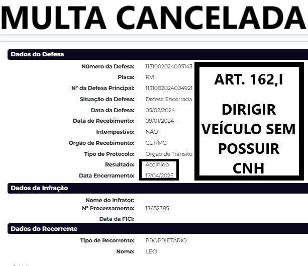 Enviamos o recurso para o órgão autuador. Nossa missão é evitar as consequências das penalidades, com a máxima transparência e agilidade.